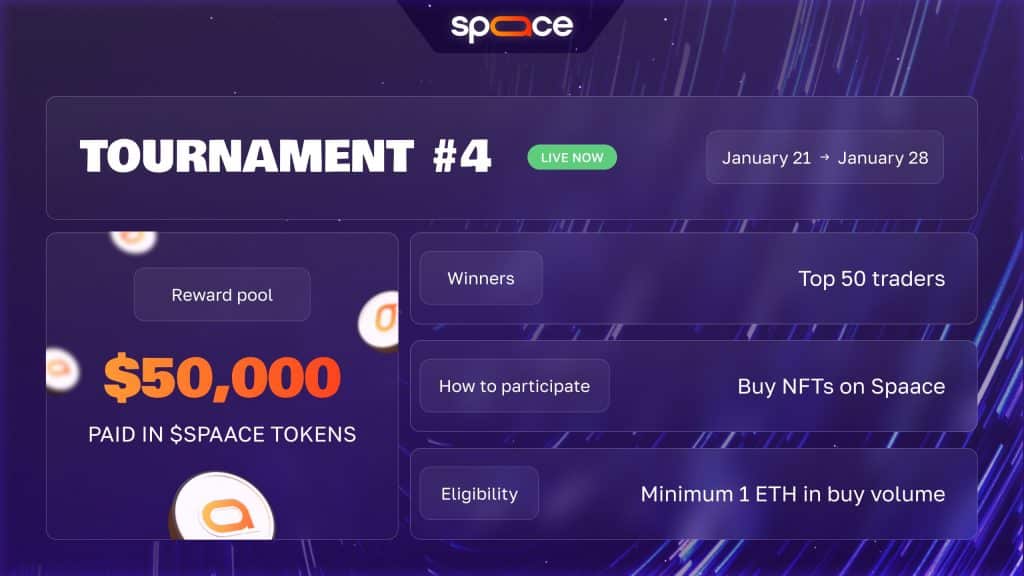 Our first dollar-based tournament will distribute $50,000 in rewards, paid in $SPAACE tokens, to the top 50 traders.